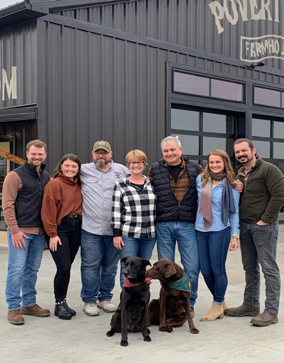 The brewery is named for a stretch of poor soil on the 200-acre farm, dubbed Poverty Knob by Casey Port’s great-grand-mother, Beatrice Port. The family opened the taproom in an existing 6,000-square-foot building on the farm, which was originally an old potato storage barn dating back to the 1970s and more recently has housed offices and machine storage.