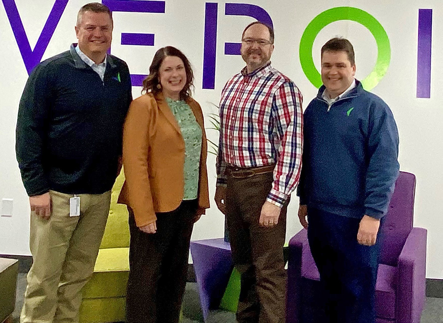 As a large commercial borrower, Wavepoint 3PL in North East, Pennsylvania, has looked to Northwest Bank for a variety of services, from commercial lending to treasury management, retirement and branch operations. Shown here, from left are: Nick Schrader, executive vice president of Wavepoint 3PL, Inc.; Northwest Regional Commercial Relationship Manager Katie Ruffa; Kirk Hill, president of Wavepoint 3PL, Inc.; and Ryan Brosius, chief financial officer of Wavepoint 3PL, Inc.