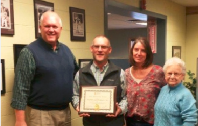 ERIE – MBA President and CEO John Krahe (left) recently presented an anniversary plaque to Robert, Leesl and Carolyn Warren of The...