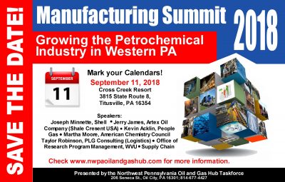 Titusville – “Manufacturing Summit 2018, Growing the Petrochemical Industry in Western PA,” will be held September 11 at...