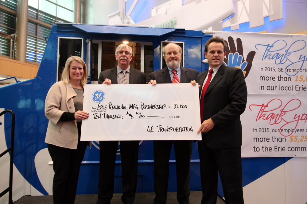 ERIE – GE Transportation made a $10,000 donation to the Erie Regional Manufacturers Partnership (ERMP) on December 9, 2015. ERMP was...
