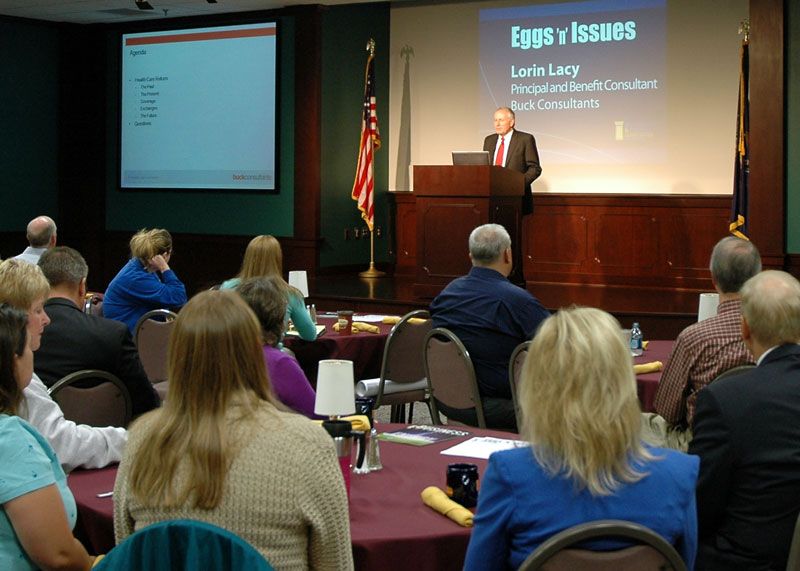 Lorin Lacy, principal and benefit consultant for global HR consulting firm Buck Consultants, was the guest speaker at the Manufacturer...